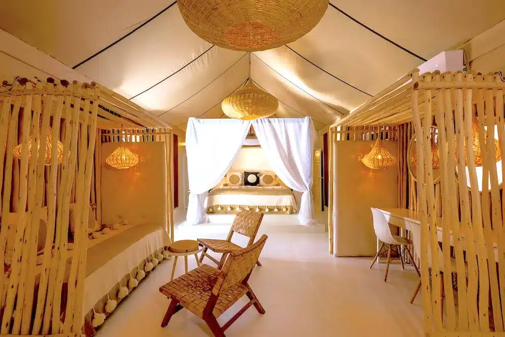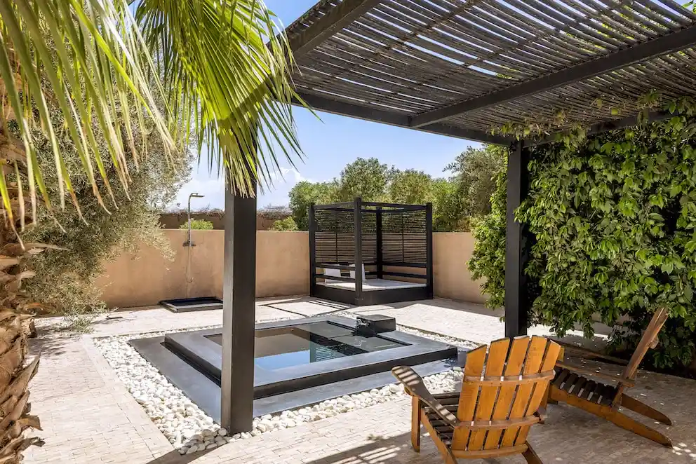 La location de la villa en Grand Lodge vous offrira un séjour incomparable à Marrakech. Chacun des 3 chambres Grand Lodge sont merveilleusement situées à 20 minutes du centre ville de Marrakech. Les 3 chambres spacieuses disposent toutes d’une baignoire creusée dans le sol face à une cheminée et d’une douche. Il est également possible de profiter d’un jardin privatif ainsi que d’une baignoire extérieure. La location de la villa en Grand Lodge offre une tranquillité et un confort unique.